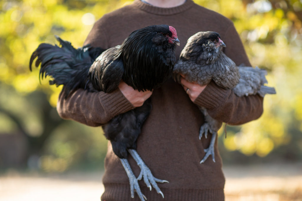 We have searched far and wide for a robust and sweet line of Ameraucana, after working with these birds quietly here for a few years we are finally ready to release the chicks for sale. Adults have lovely plumage, clean legs and pea combs. They are predator wise, steady layers of really lovely true sky blue eggs. Chicks are personable and have the sweetest little bearded faces.